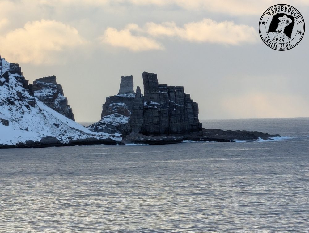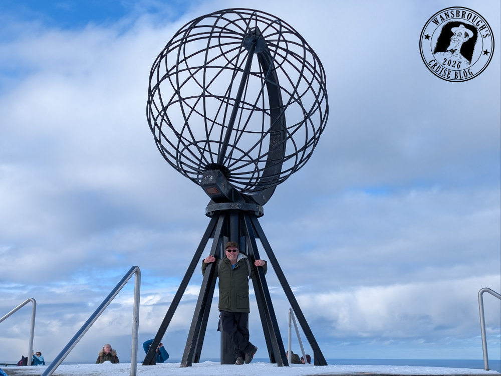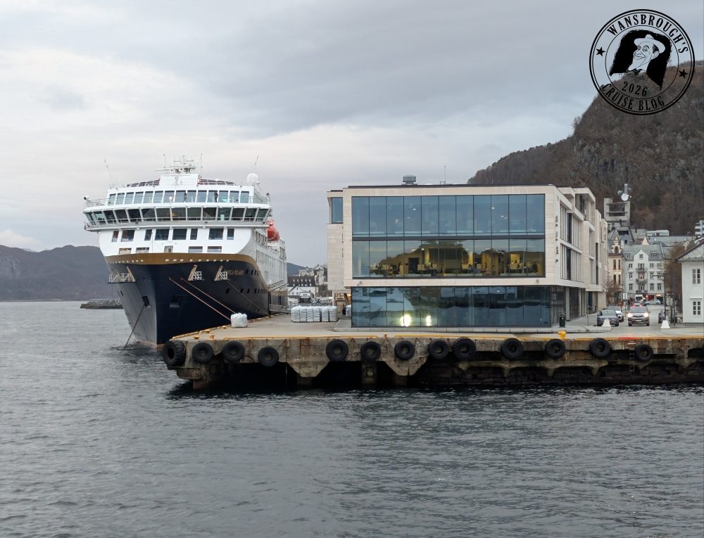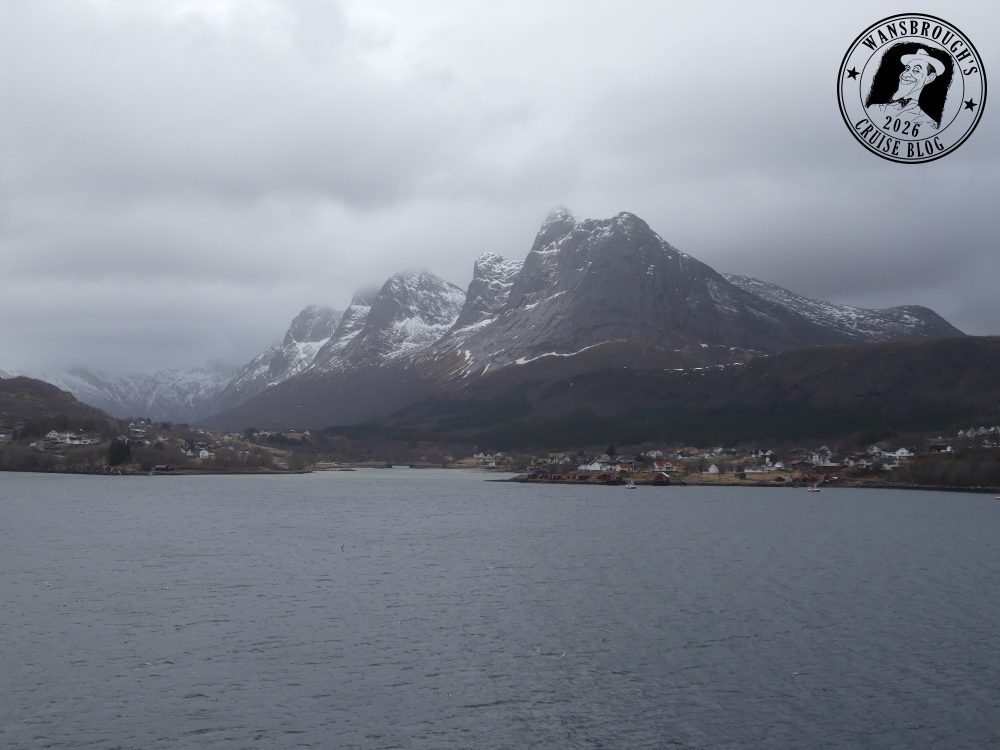 As it happened, we both slept really well and my Fitbit clocked my sleep at 9 hours. We received an announcement over the ships PA shortly before 6:45 telling us we were about to cross the Arctic Circle at 66°33’N. so the weather obviously didn’t slow us down any. At precisely 7:11 we officially crossed that invisible line into the Arctic, however due to the weather, the outside decks were closed off, so in order to capture a photo of the monument which is a large metal globe on the island of Vikingen. I had to use my phone up against the glass but the results weren’t good so I have decided not to post any on the blog.