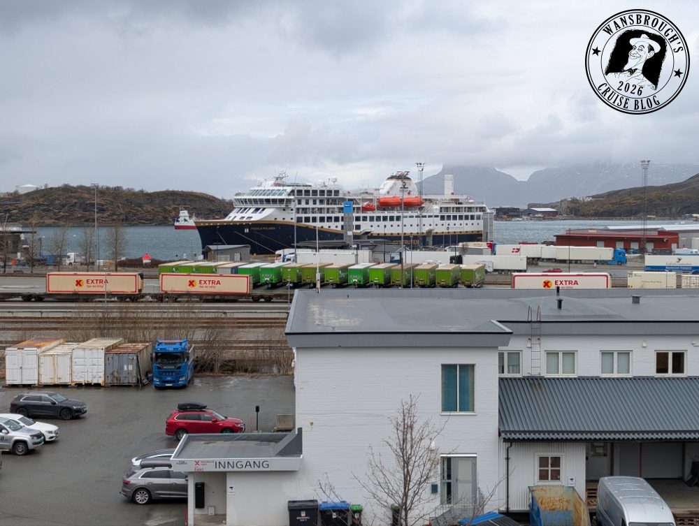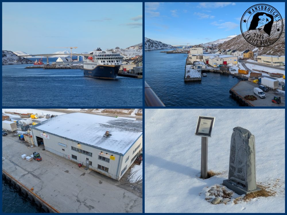 We arrived on schedule at 4:40 and departed 20 minutes later for the next port, Mehamn which we got to during dinner so no photos. Sadly our excursion tomorrow has been cancelled due to bad weather, we were due to be doing a snowmobile safari at Kirkenes but will now probably just get off and explore.
