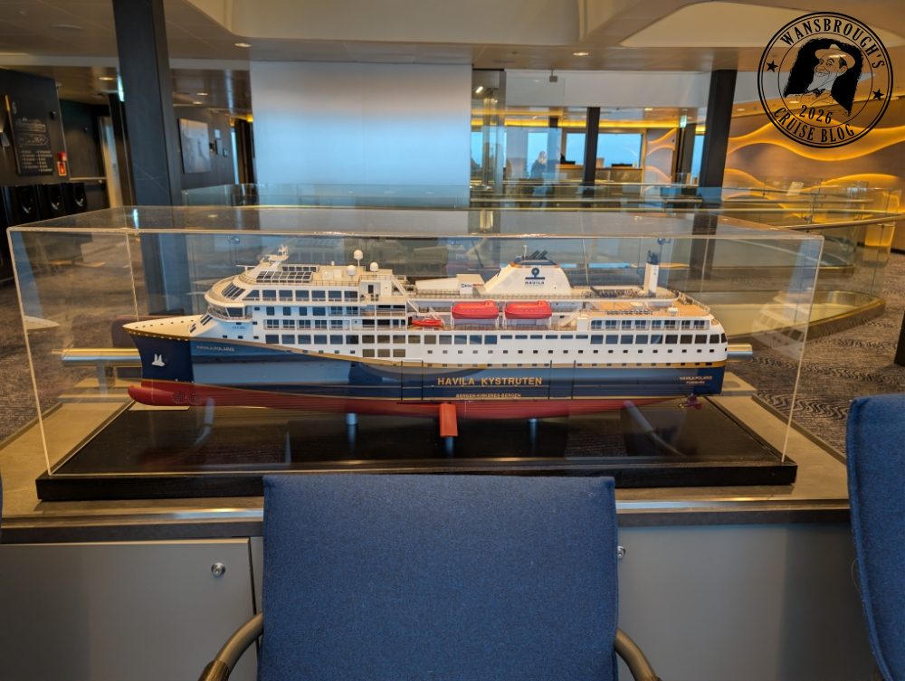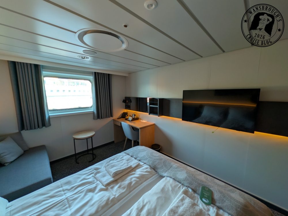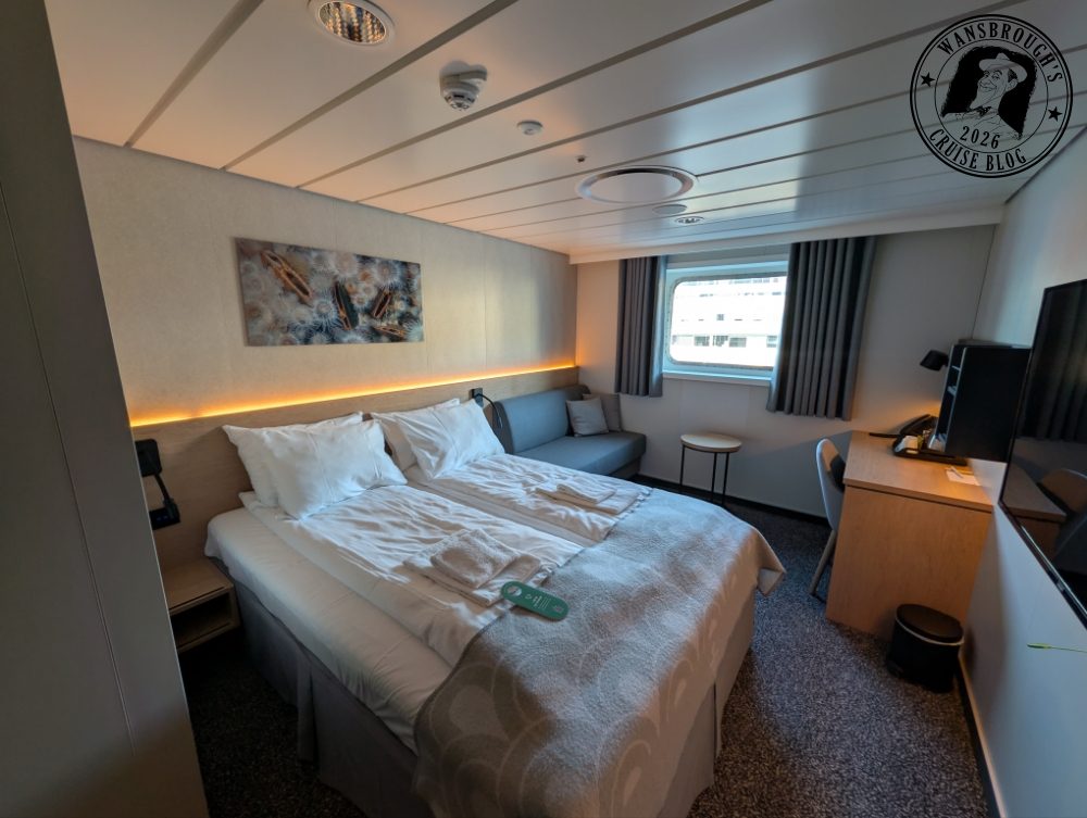 It’s a very small ship for us, and the cabin we have chosen is a centrally located Seaview Superior Double on deck 5. It’s right next to the atrium and close to the stairs, so if we are in our cabin when the Northern Lights alarm is sounded, we shouldn’t have too far to travel to get out on deck.