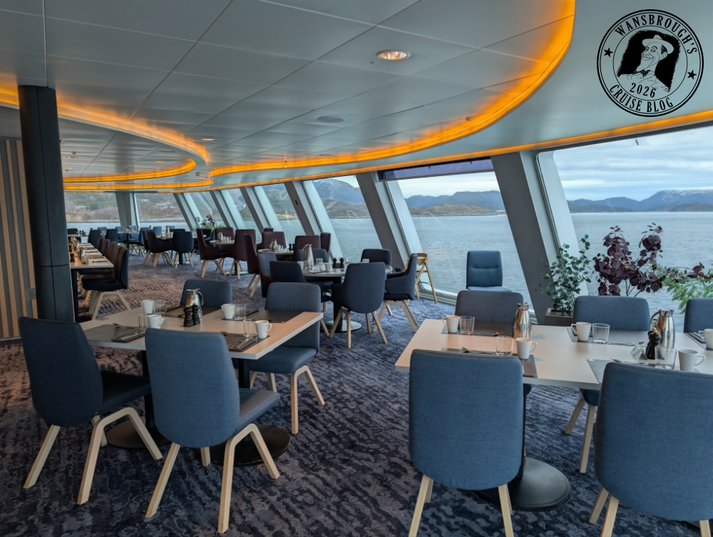 All quiet on the Northern Lights front last night, I guess it must have been too cloudy. I retired to bed early to catch up with some sleep as I seem to be waking up earlier than normal and it’s having a knock on effect. It does mean that we are both up in time for when breakfast starts and that’s when it’s at its quietest.