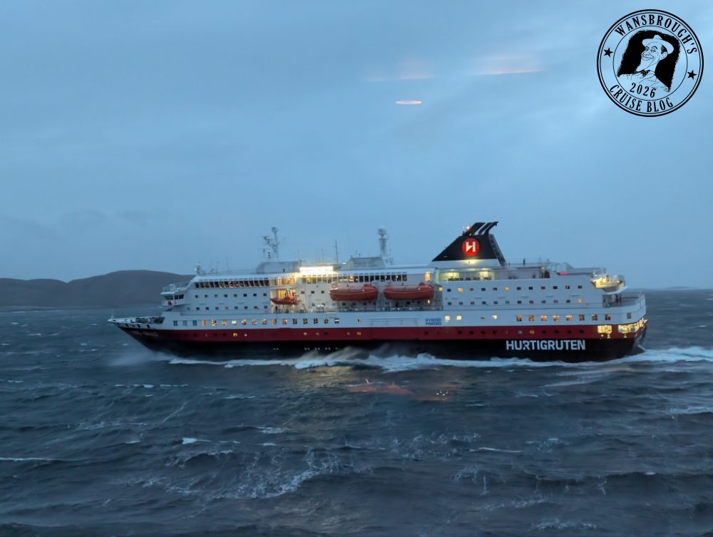 We decided to retire to the cabin after dinner as we considered it would be the best place to ride out the bad weather. For the size of ship, she handled the stormy seas really well. I noticed on the ships model that there were stabilisers and a quick Google revealed they are Rolls-Royce Neptune 200 stabilizers, designed to significantly reduce rolling motion in windy conditions and rough seas. Well I can honestly say, that they worked brilliantly last night.