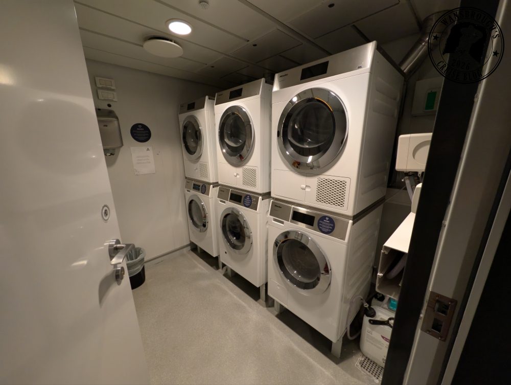 The laundry room is a nice little set up on Deck 4, it’s all Miele appliances, tumble dryers stacked on washing machines. No detergent required as it’s all included, self loaded and free.
