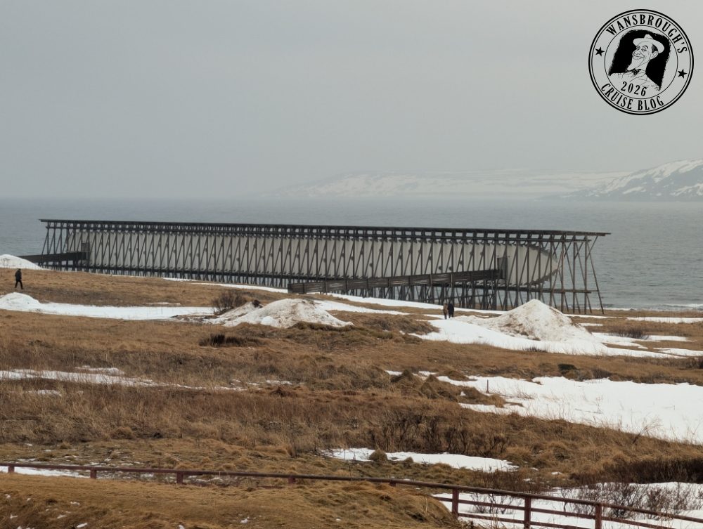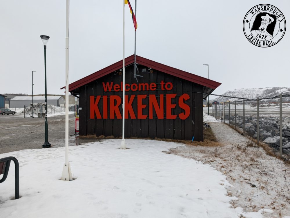 From the ship, it looked very grey, bleak and flatter than the landscapes we had experienced over the last week. Breakfast itself was very busy this morning with many people getting off to do excursions at Kirkenes. As I mentioned yesterday, ours was cancelled and we didn’t fancy anything else on offer so made the decision to get off and use the ‘The Coastal Ferry Guidebook’ as a loose guide to navigate our way around Kirkenes. As so many people were getting off, we hit on the idea that the laundry would be quiet and we assumed correctly so put a wash on and went to the Havblikk Lounge to wait until the cycle had completed.