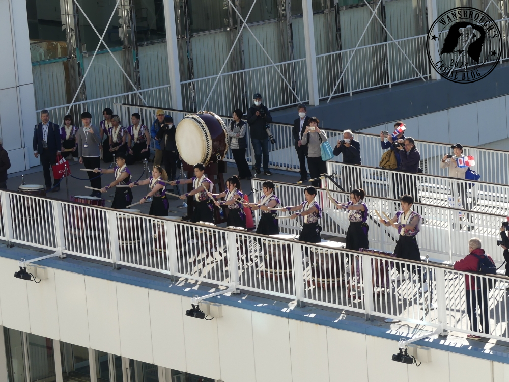 While we were waiting for clearance, we were treated to a display of some very enthusiastic and talented Japanese Taiko drummers.