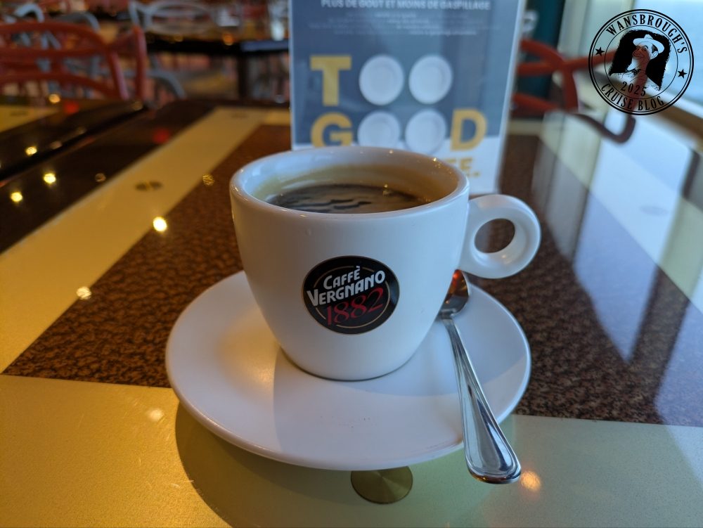We didn’t actually retire to the cabin until gone 1:30 this morning so it was an even longer day than I previously reported. After we had eaten dinner, we went back to the cabin and Nicole unpacked, we then set about having a look around the ship to re familiarise ourselves and also to see what changes we could spot. We ended up in the atrium and rounded the day off with a few drinks. Speaking to the Maître D during dinner, we asked about where to go for breakfast if you have special dietary requirements, his response wasn’t what we were expecting in as much as he said there were no special provisions for a vegan breakfast and suggested we should visit the buffet. On our last 3 Costa cruises there has been a special vegan breakfast MDR menu but on this one it doesn’t exist, in fact there doesn’t seem to be one for anyone.